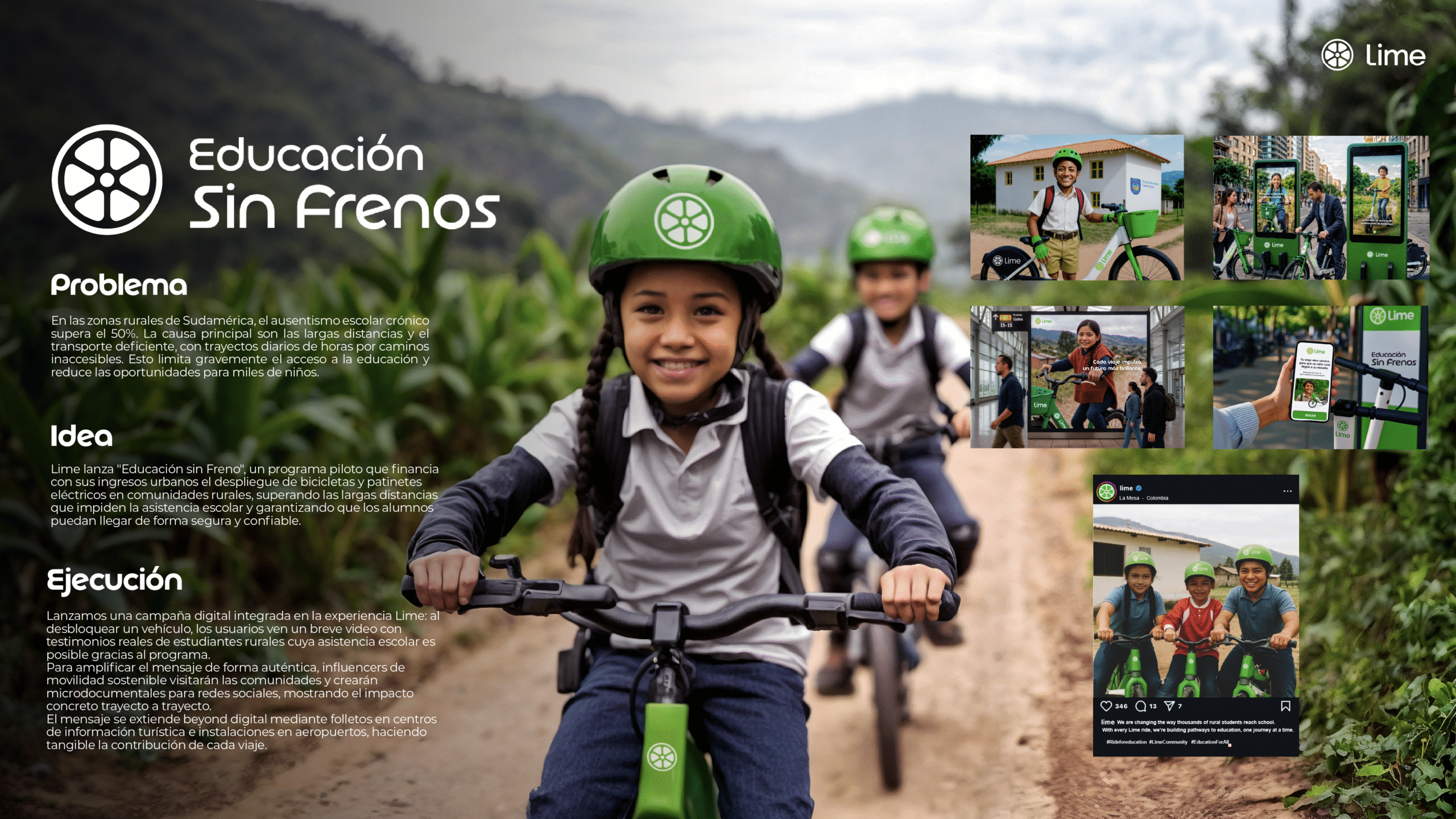 Lime impulsa “Educación sin Frenos”, un programa que gracias a los viajes urbanos financia bicicletas y patinetes eléctricos en comunidades rurales, permitiendo que miles de niños superen distancias imposibles y lleguen seguros a la escuela.